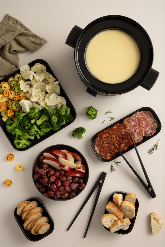 Avec notre Fondue Carbonara, on ne fait pas les choses à moitié! Nous vous proposons un bouillon crémeux comme il s’en fait peu, dans lequel vous pourrez cuire et réchauffer des crevettes, des lardons et de succulentes boulettes! Et c’est sans oublier les pâtes fraîches, sur lesquelles ces délicieux ingrédients pourront être disposés, avec une belle variété de légumes cuits ou grillés!
