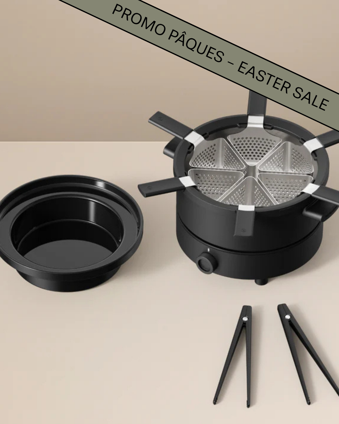 Cet ensemble 3-en-1 noir à six paniers comprend tout ce dont vous aurez besoin pour préparer des festins de premier choix. En mode fondue à bouillon, au fromage, dessert ou comme poêlon, découvrez l’appareil ultime pour réinventer votre vie en cuisine.