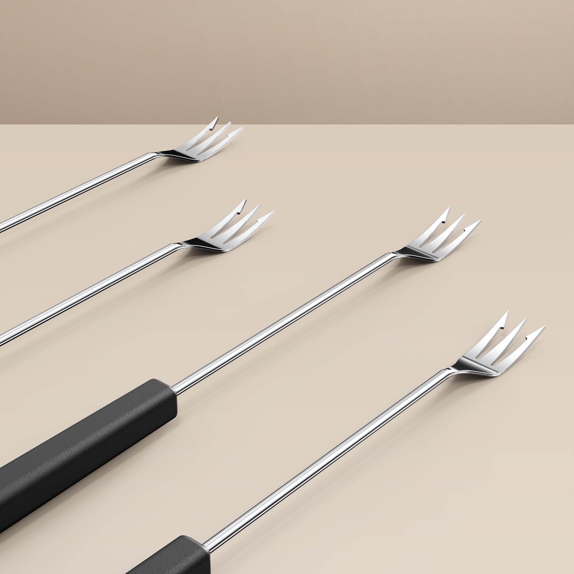 Apportez du style à vos repas avec cet ensemble de 12 fourchettes à fondue Fondussimo. Leur design élégant et leur touche de couleur subtile permettent à chacun d’identifier facilement sa fourchette, tout en conservant l’esthétique raffinée de votre table. Compatibles avec toutes vos fondues (fromage, viande, chocolat…), elles sont robustes, durables et agréables à utiliser.